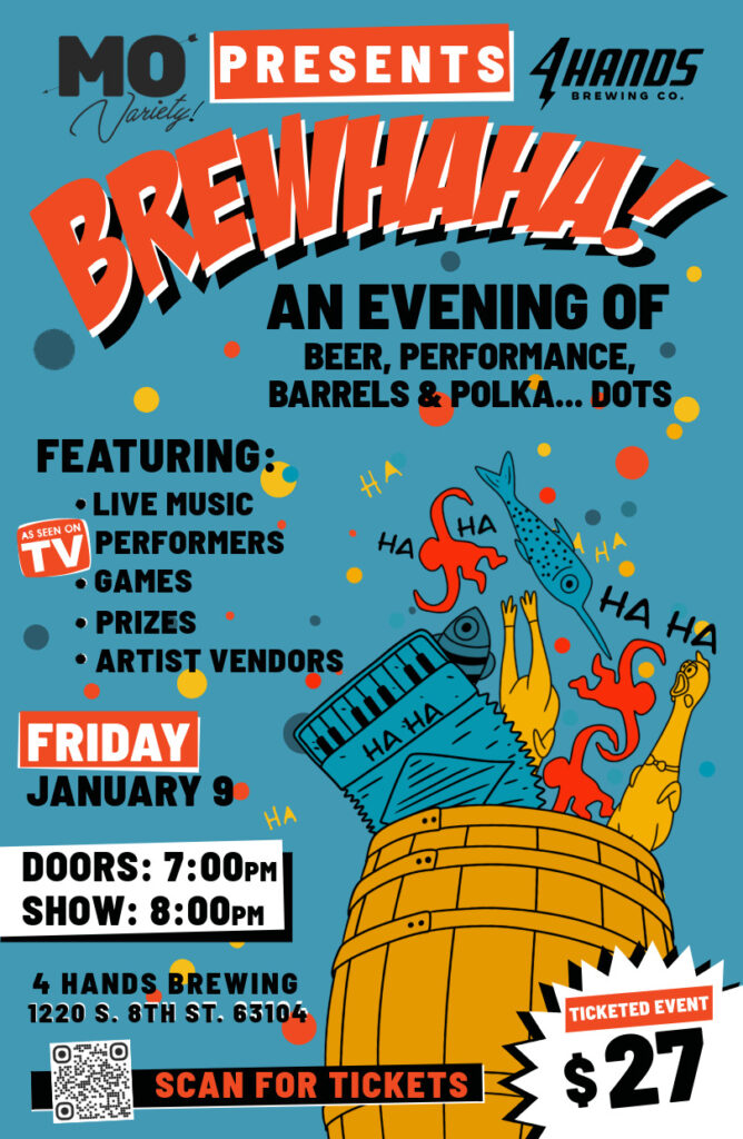 An evening of beer, barrels, and polka… dots featuring world renowned and As Seen On TV performers. Plus, board games, trivia, beer and burgers, art vendors, prizes, and more! Barrels of fun and laughs, really. Themed attire encouraged.